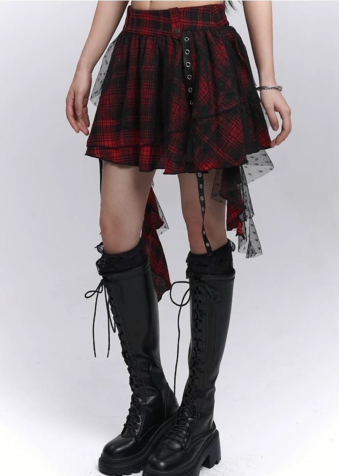 GHOSTLY CHECK RIBBON MINI DRESS / LG1490