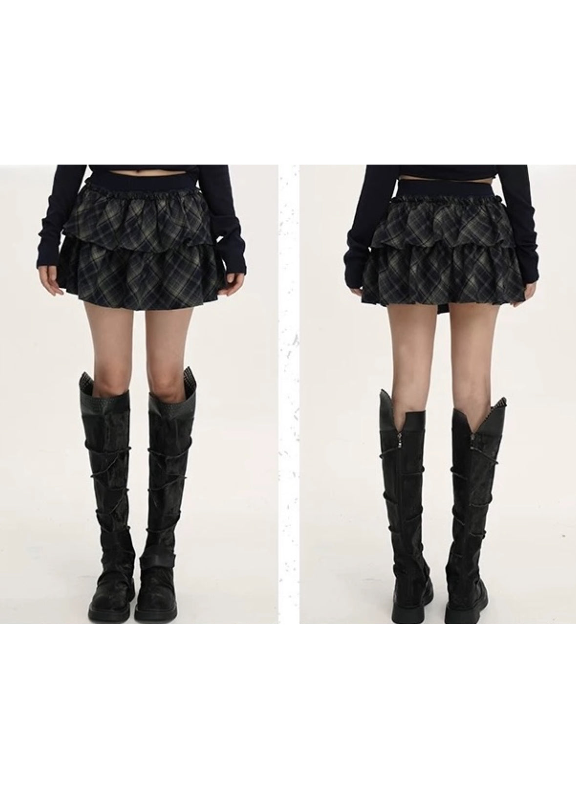 クラシカルなチェック柄にフリルを重ねた、ガーリーなミニスカート。