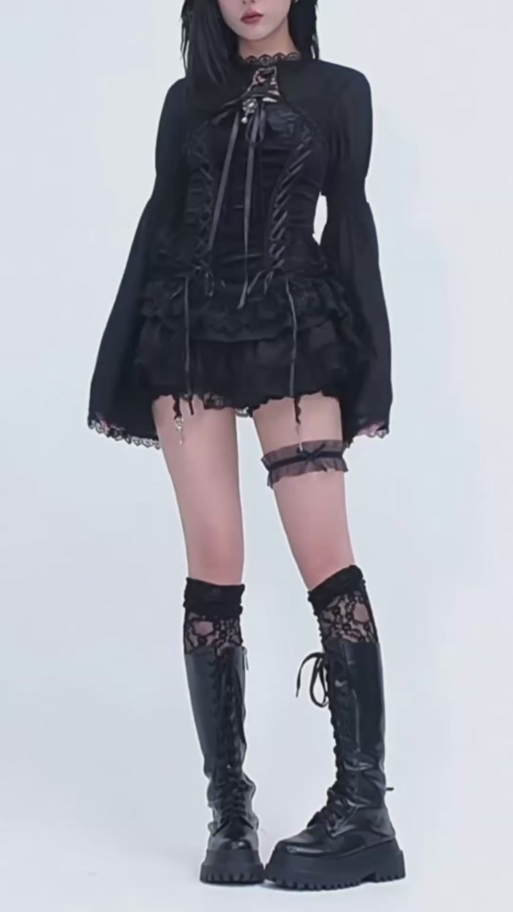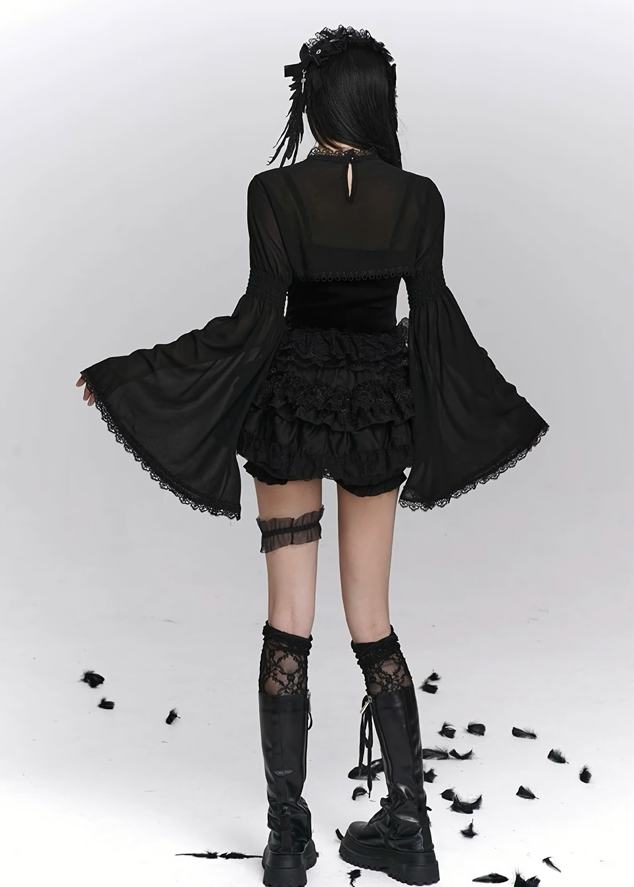 透け感のあるベルスリーブカーディガンを羽織れば、一瞬でゴシックドールの完成。