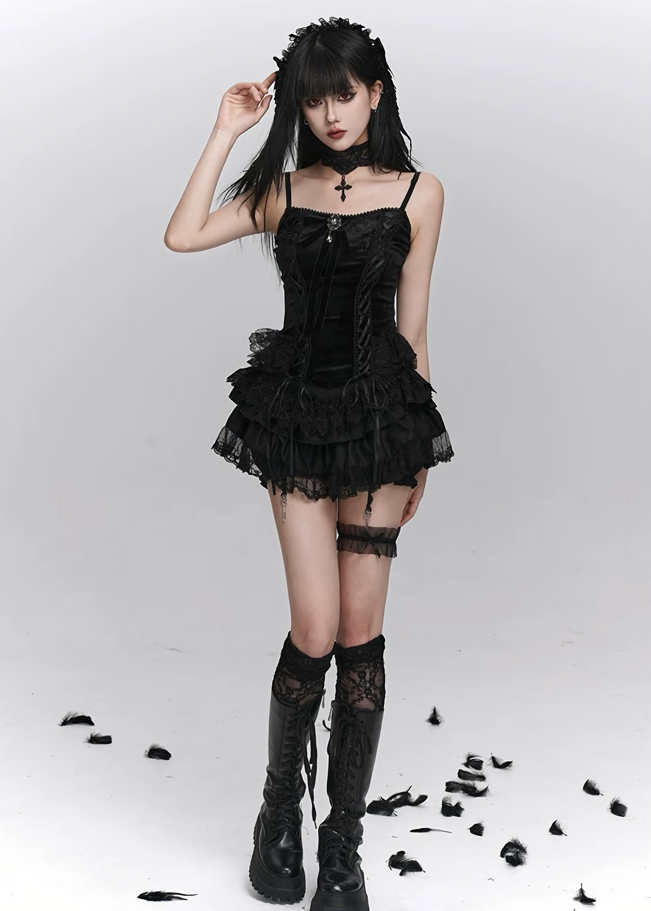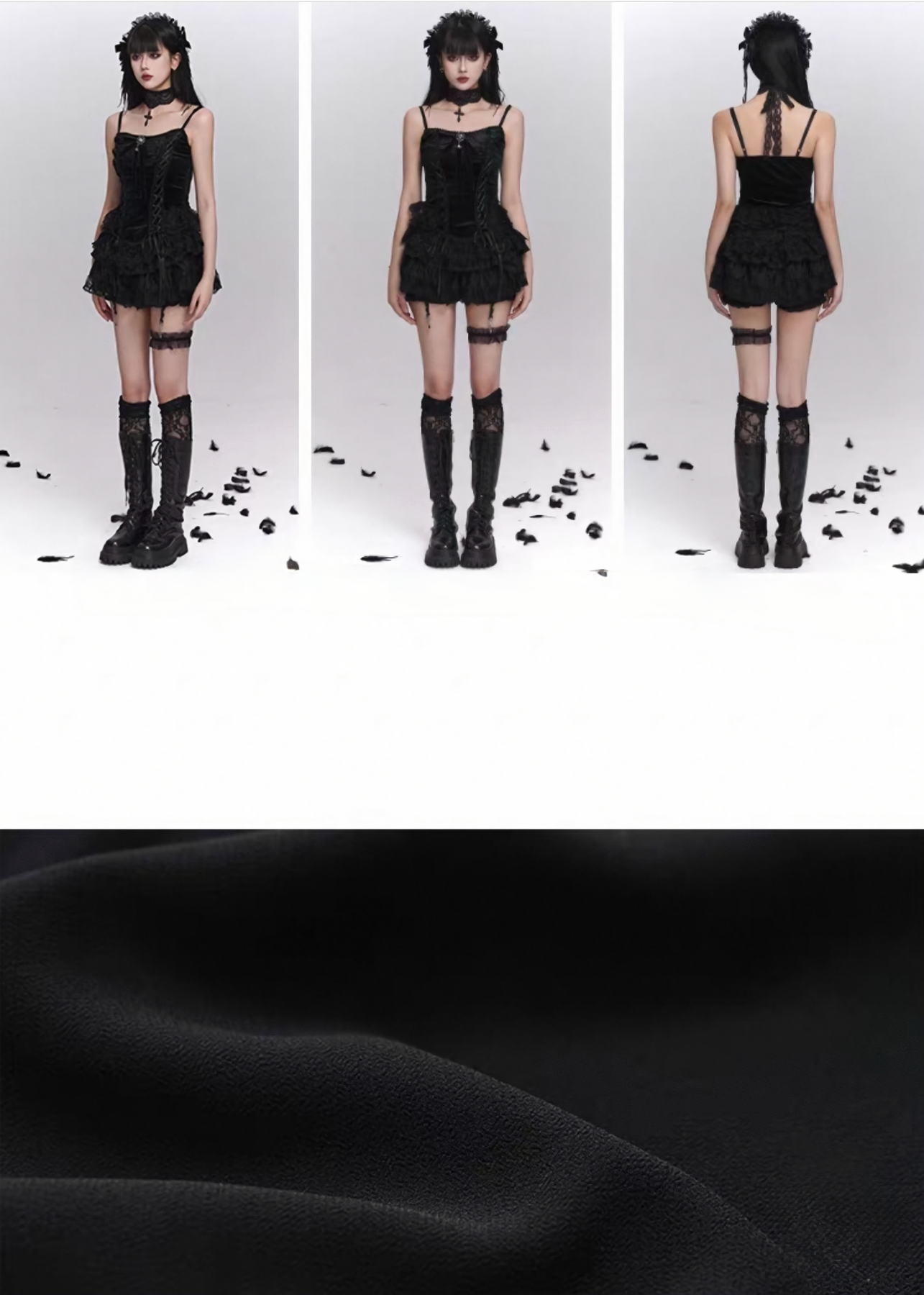ウエスト部分の編み上げデザインでくびれを強調しつつ、甘くて小悪魔な雰囲気を演出。