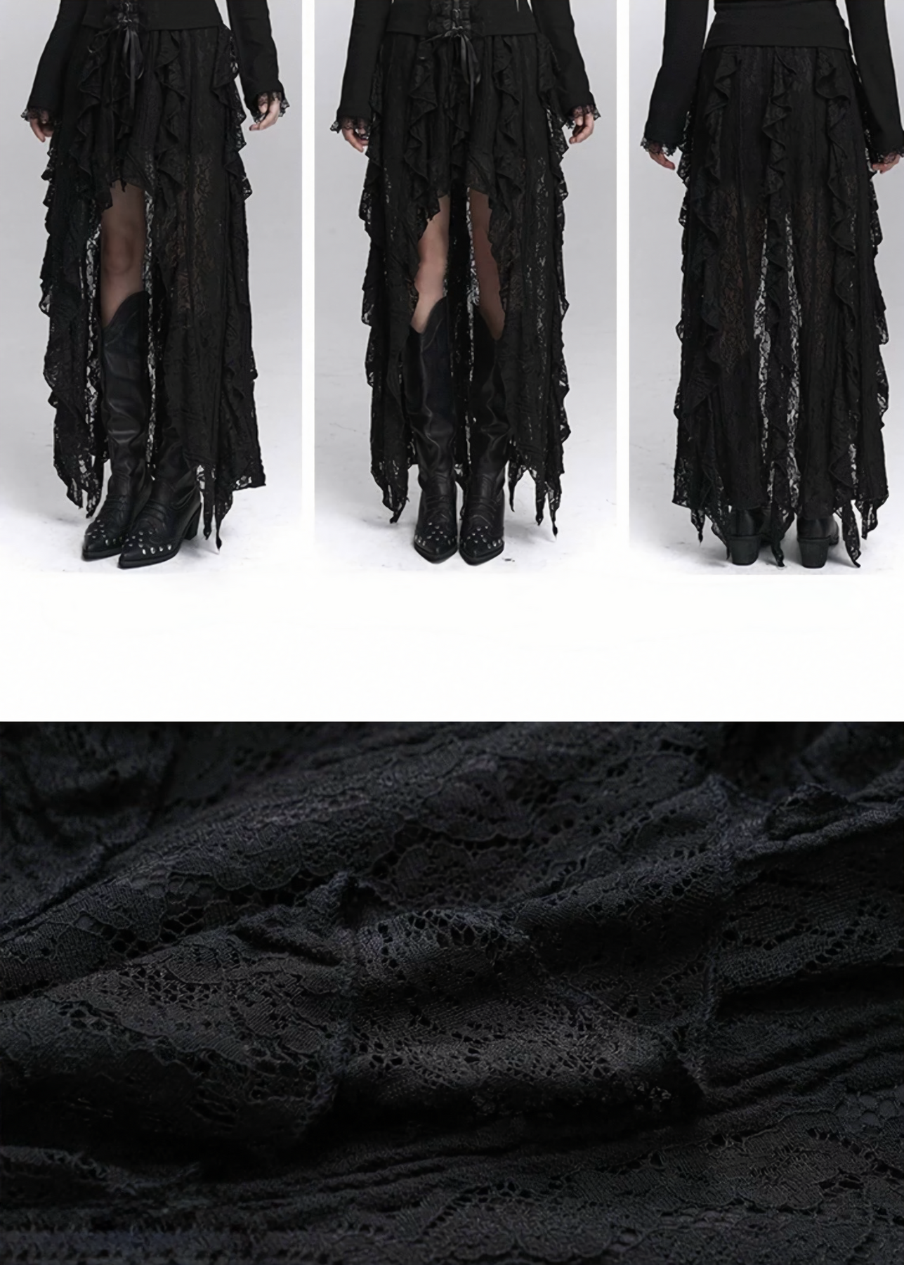 多層レースとアシンメトリーなカッティングが魅力のレーススカート。