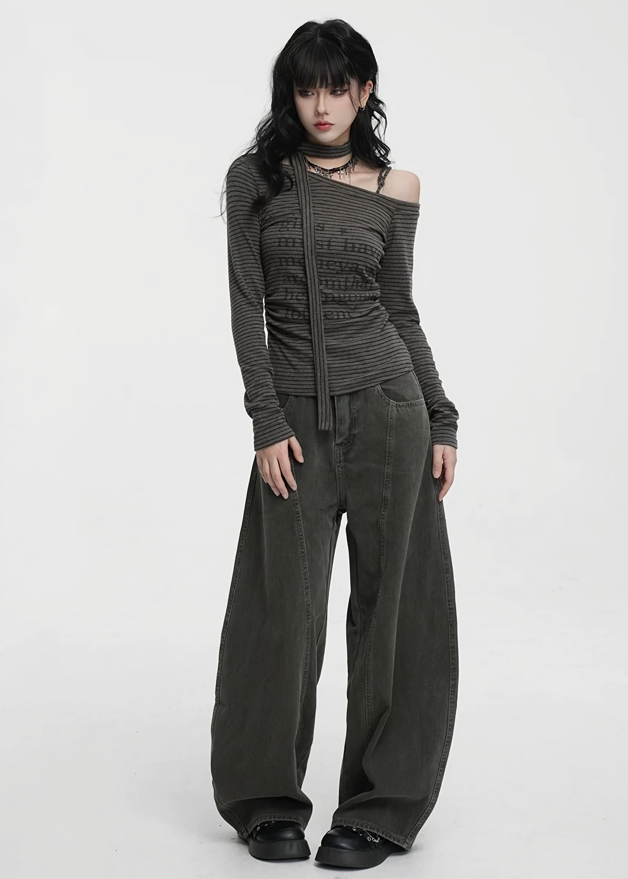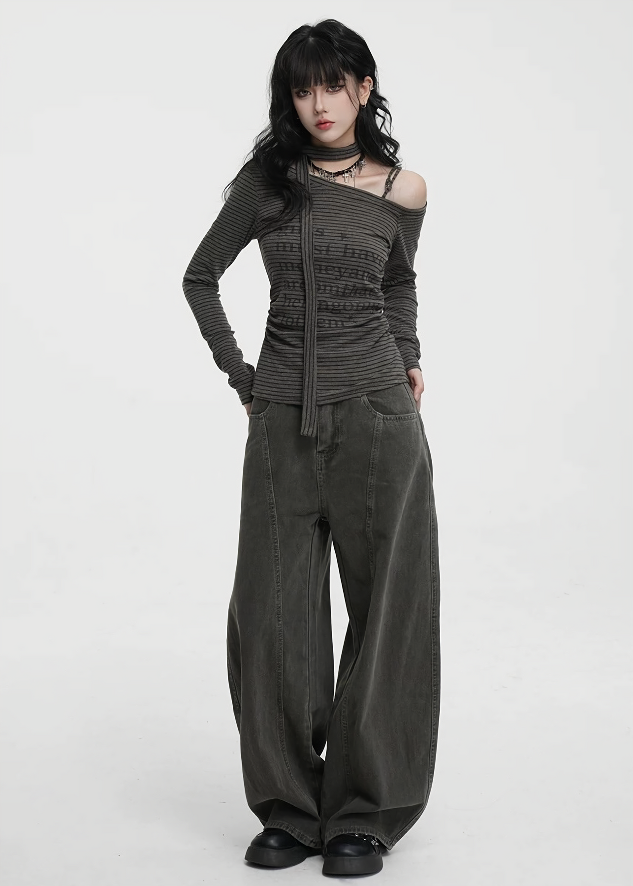 深みのあるブラウンとスモーキーグレー、2色展開のオーバーフィットワイドデニム。