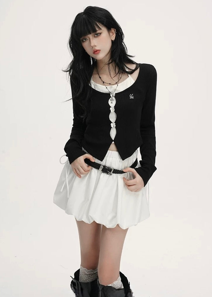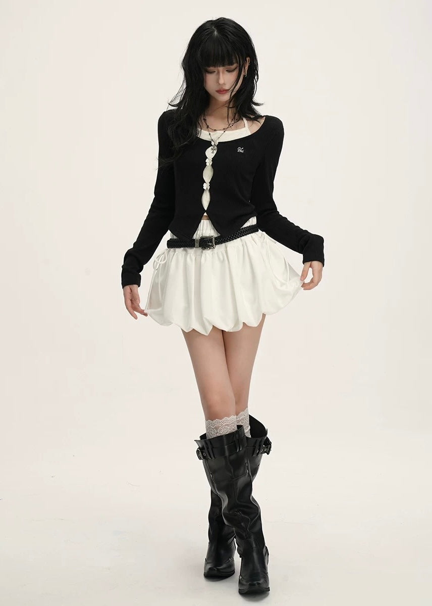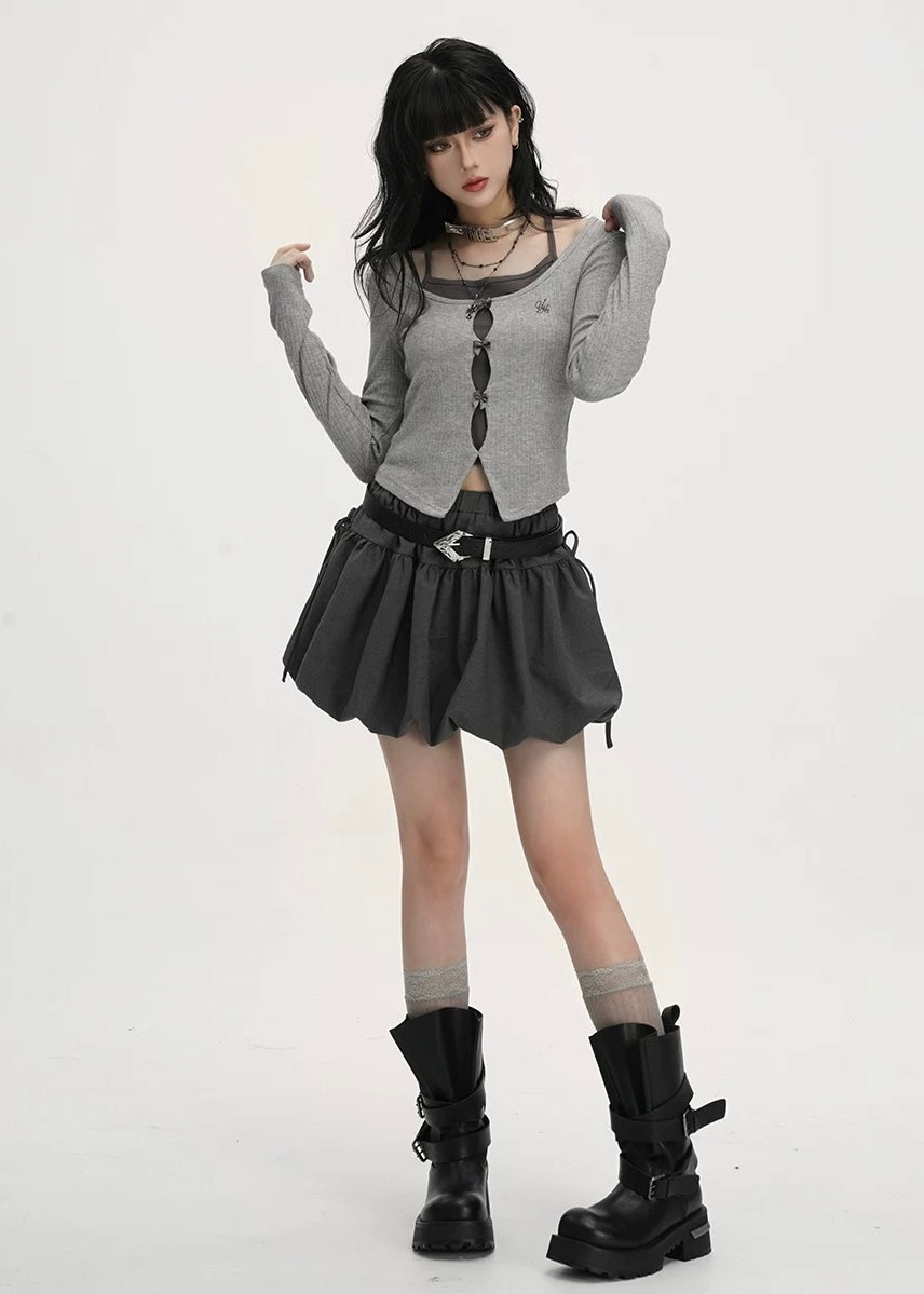 同時に着用しているBalloon Mini Skirt / LG1377と合わせれば、甘辛バランスが絶妙な最旬スタイルに♡
