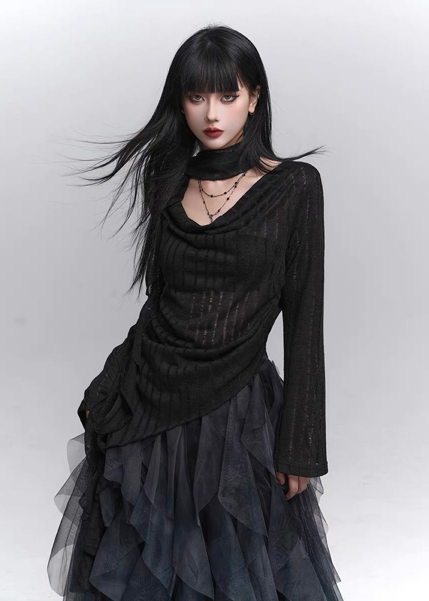 闇に溶け込むような透け感が魅力のゴシックニットトップス 🖤