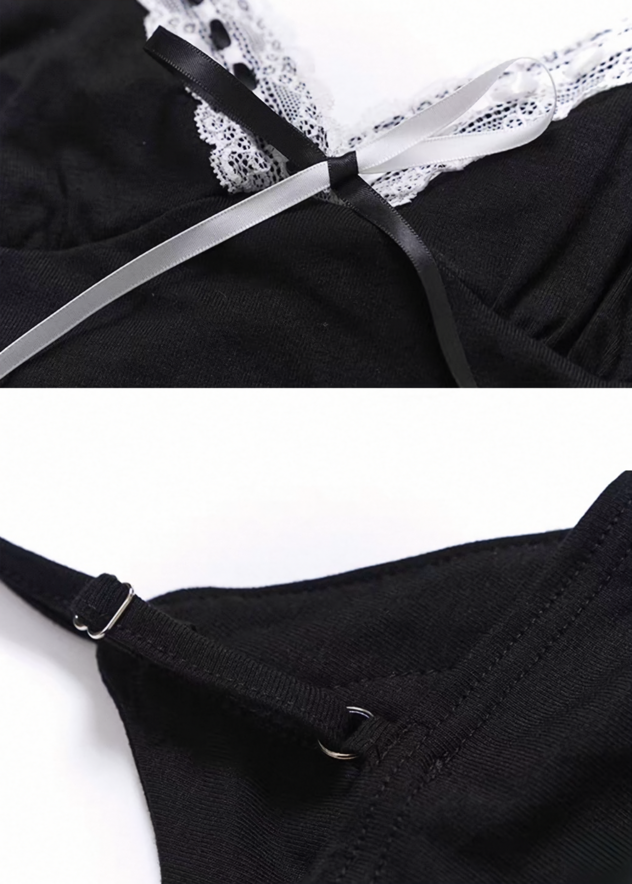 静かな夜気をまとったブラックに、繊細なレースの白が浮かび上がる、カーディガン&キャミソールの2ピース+チョーカーのセット。