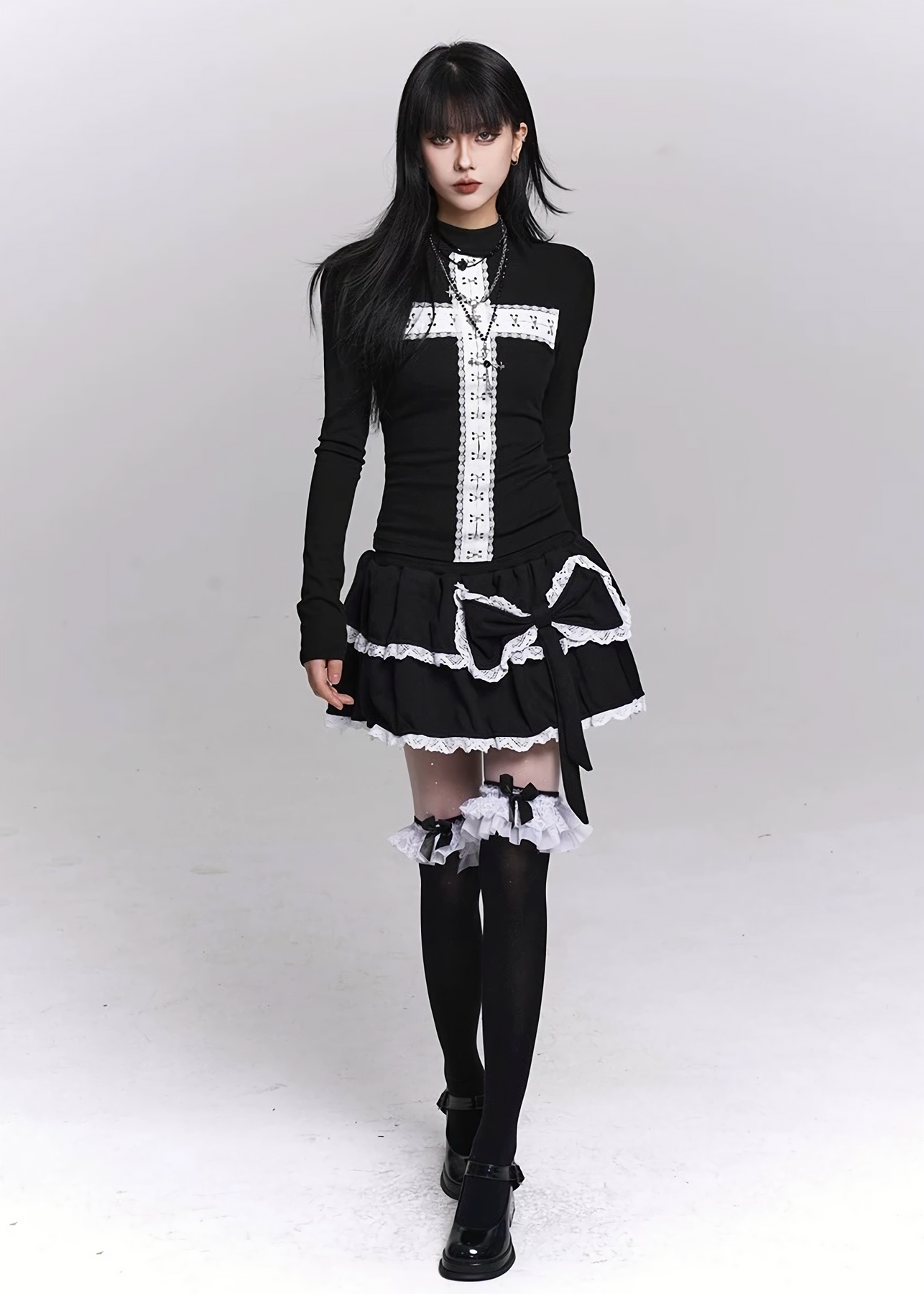 GHOSTLY CROSS HIGHNECK TOP / LG1491