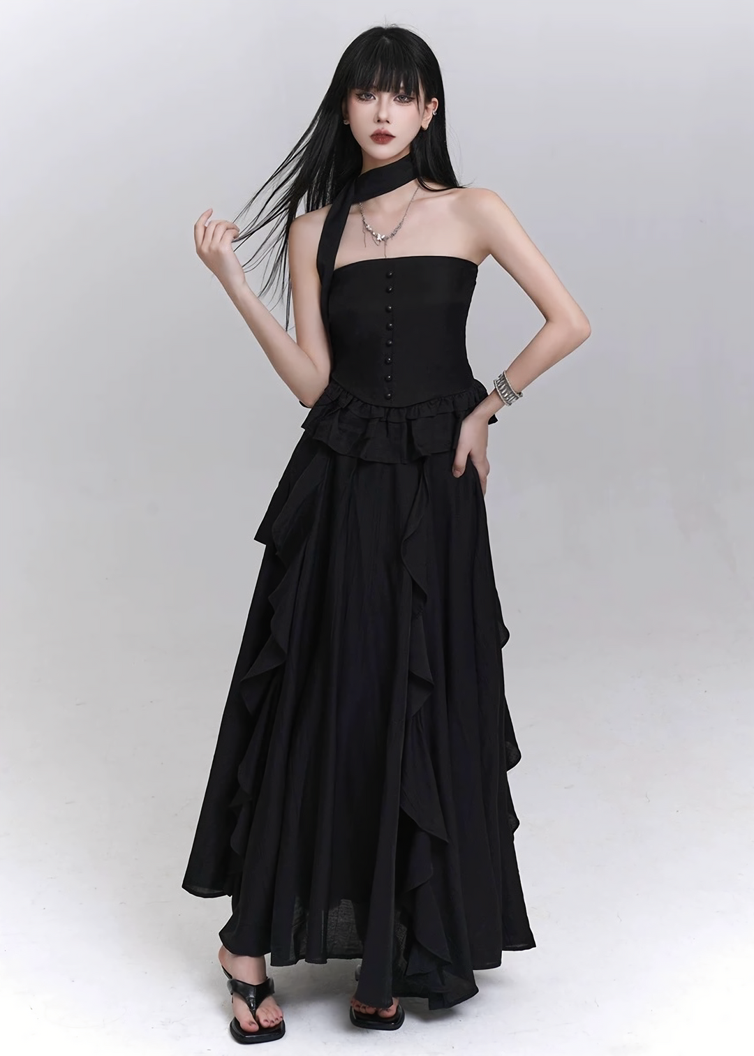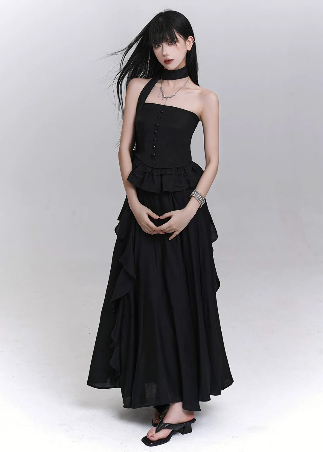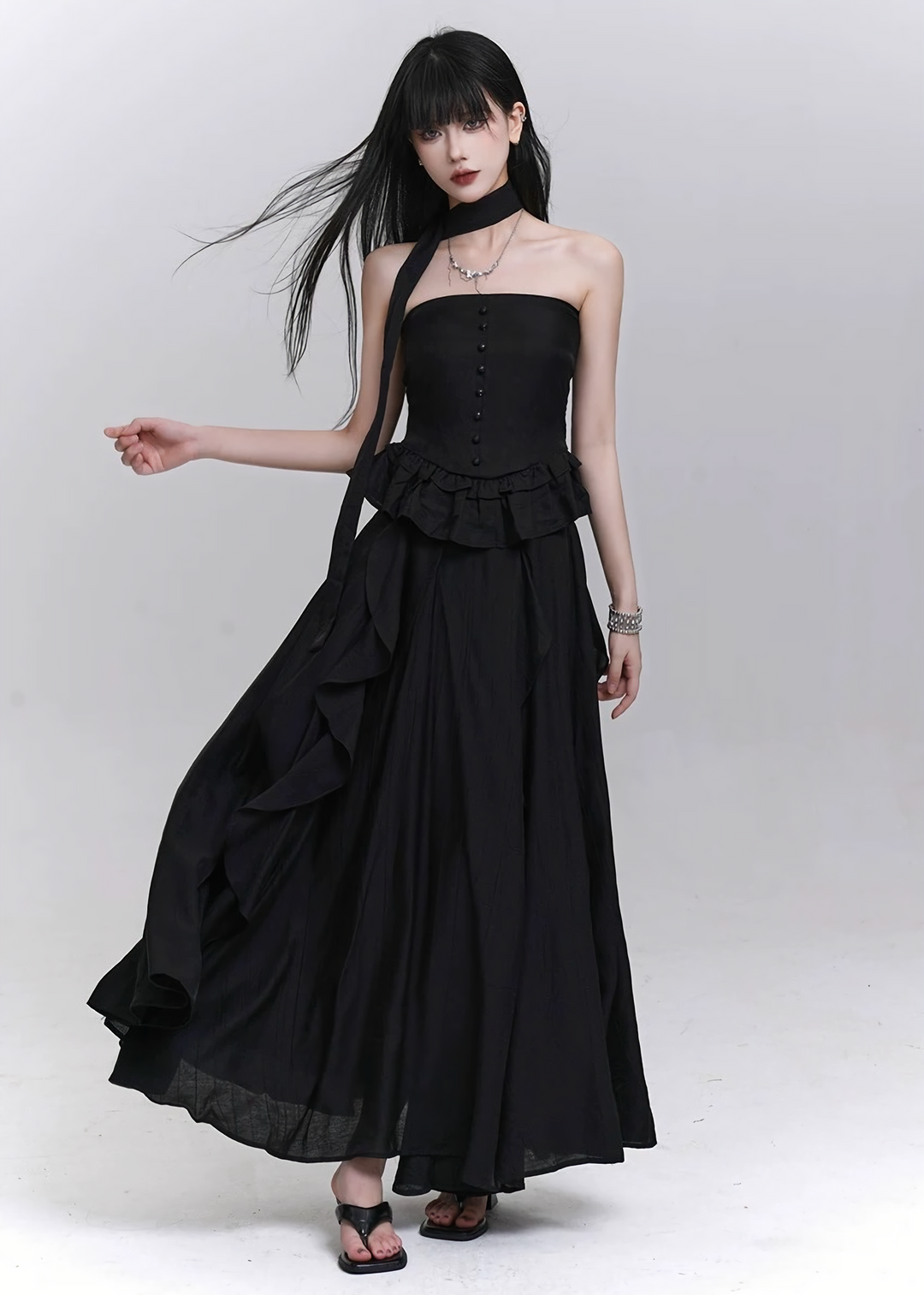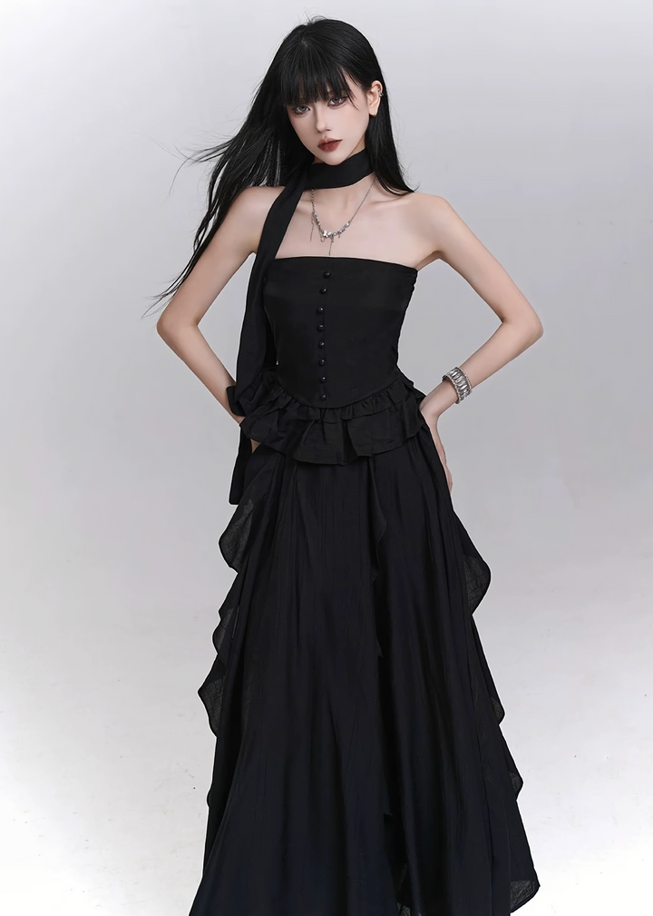 Ruffled lace tube top & Asymmetrical sheer volume skirt / lg1309