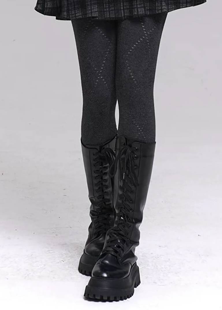 静かに影を踏みしめるような重厚感をまとった、プラットフォームロングブーツ。