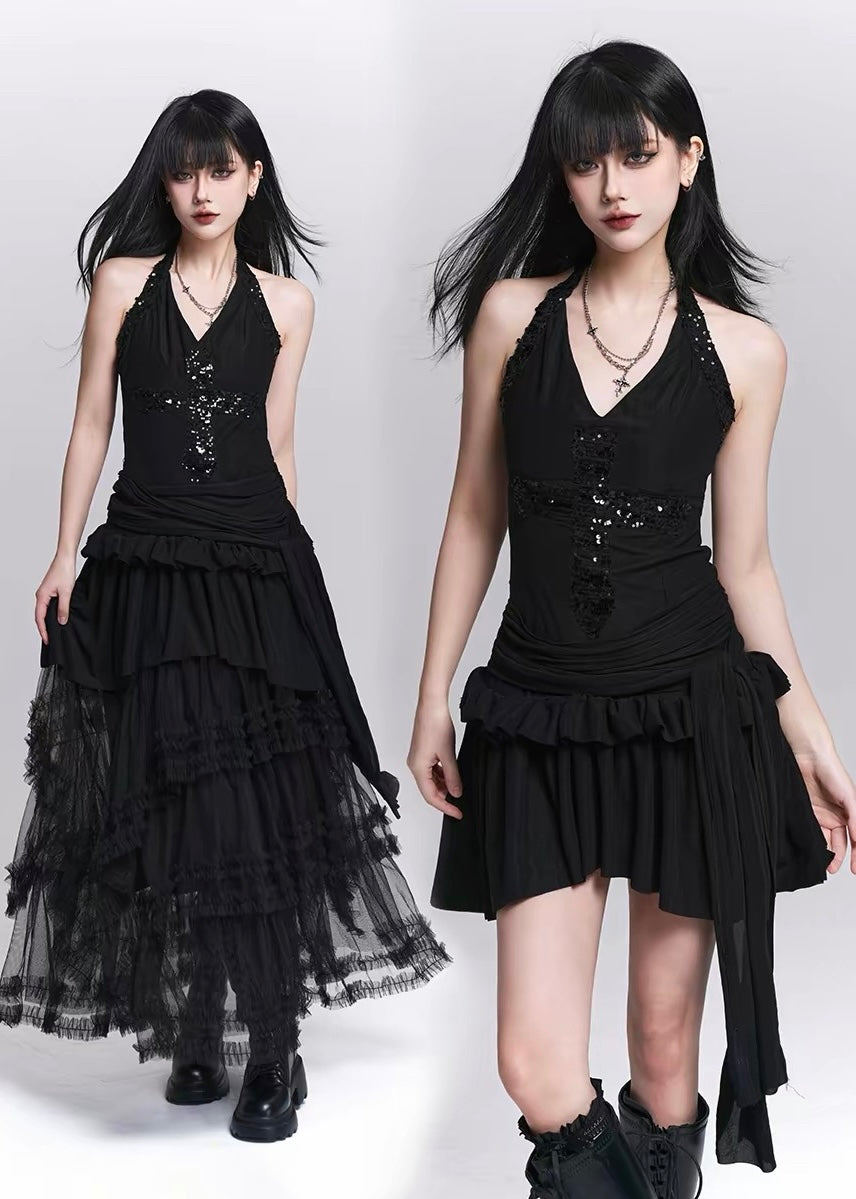クロスの輝きが、静かなゴシックの存在感をつくるホルタートップ。
