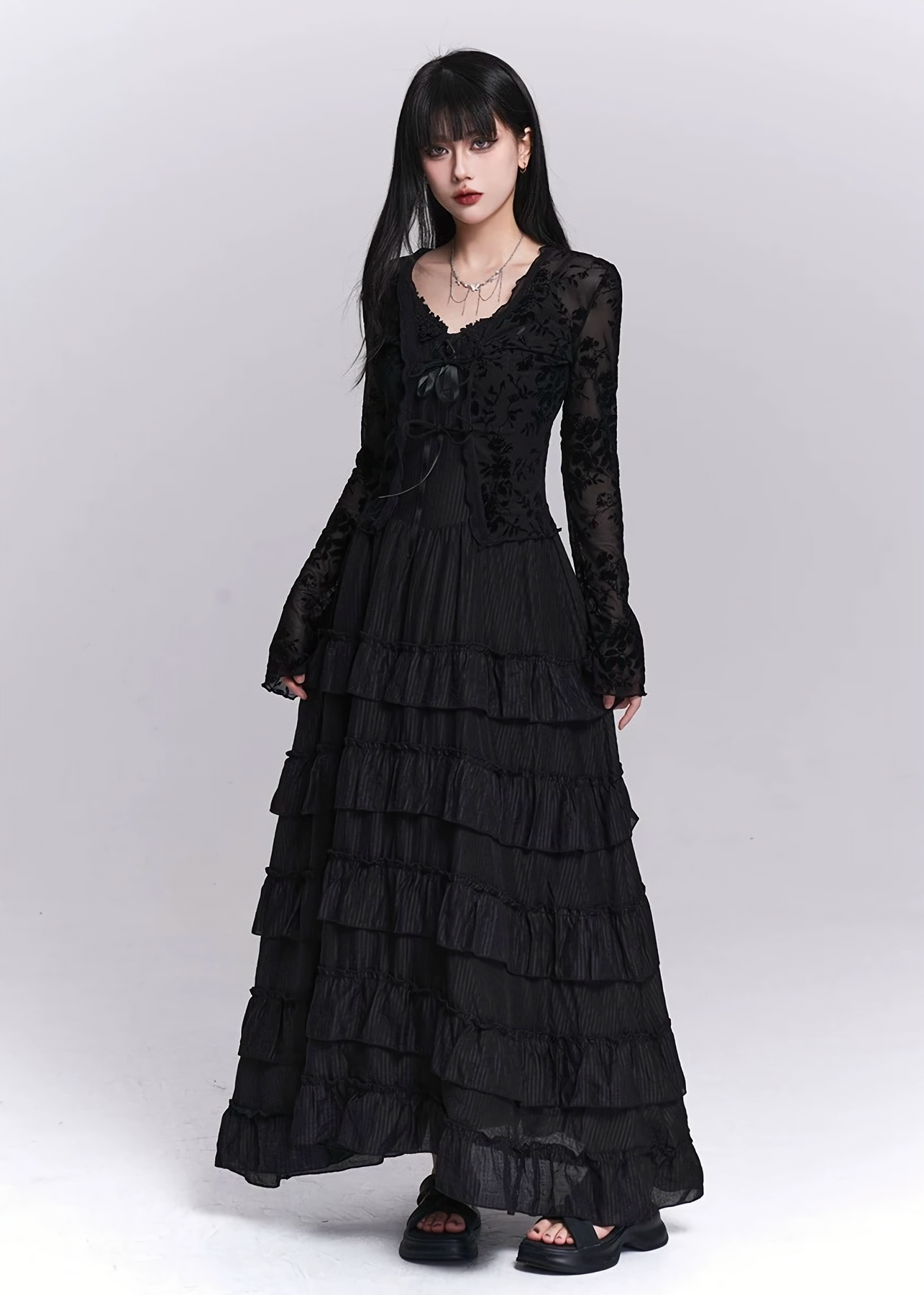 静かな存在感を放つ、ゴシックロングドレス。