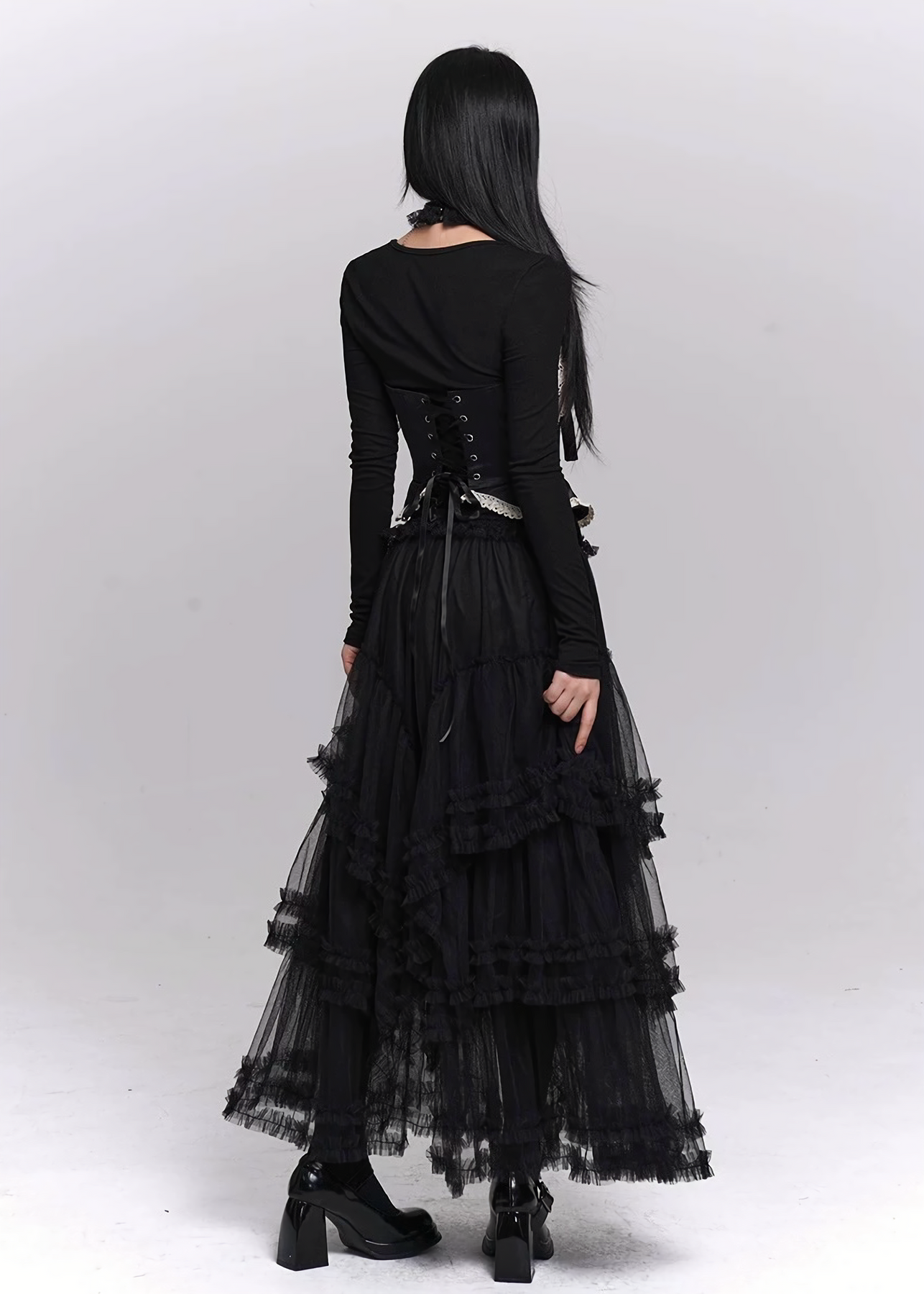 透け感のある素材が、コルセットの立体感を引き立てます。