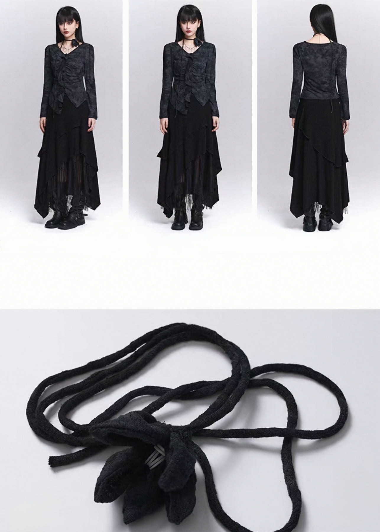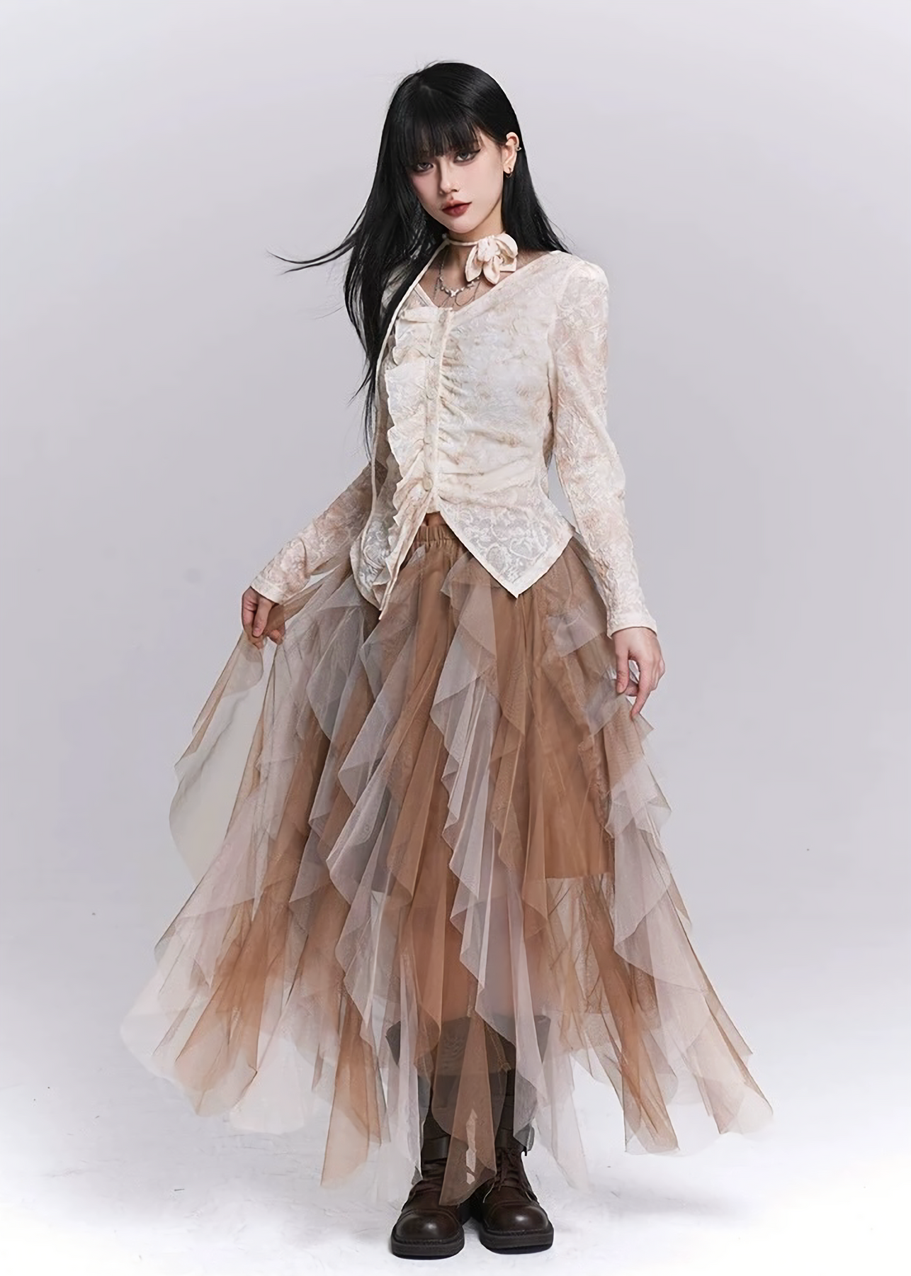 IRREGULAR LAYERED LACE FRINGE SKIRT / LG1526