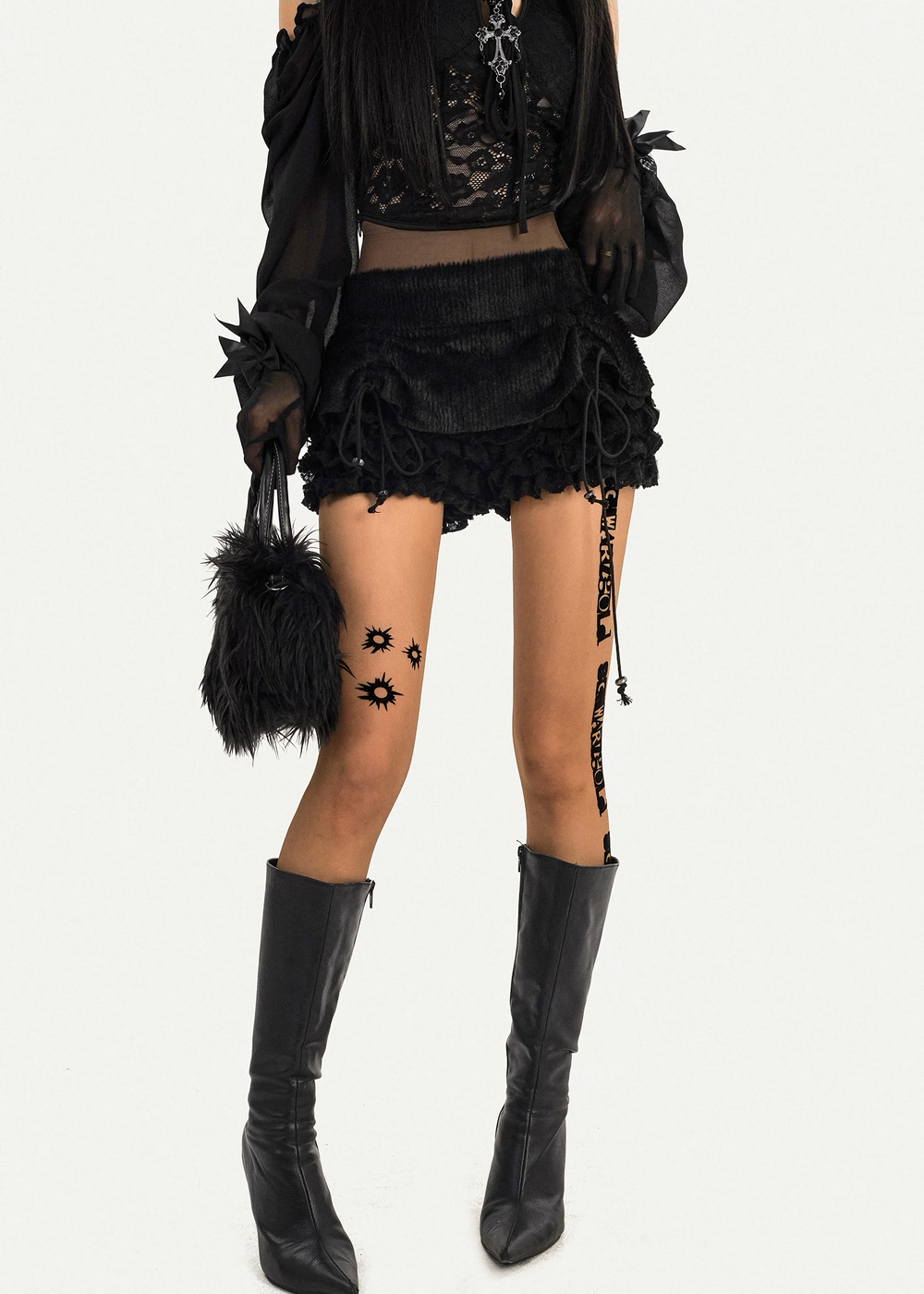 ファーとフリルを重ねた、立体感のあるミニスカート。